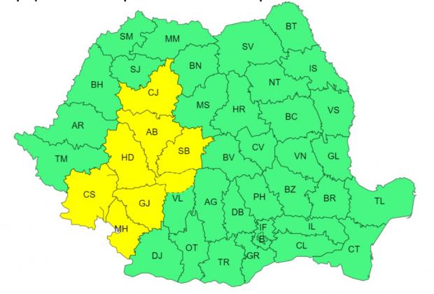 A doua avertizare meteo cod galben este valabilă în intervalul 05 octombrie, ora 15 – 06 octombrie, ora 12.