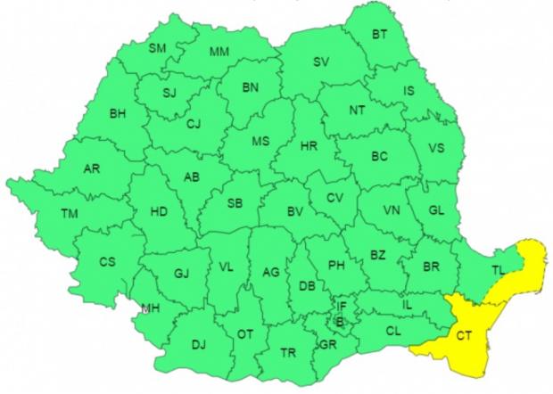 În intervalul menționat, pe litoral vântul va continua să prezinte intensificări, cu viteze de 50...55 km/h și temporar 60...65 km/h. Local în județul Constanța, în prima parte a nopții vor fi averse, iar în intervale scurte de timp sau prin acumulare cantitățile de apă vor fi în general de 20...30 l/mp.