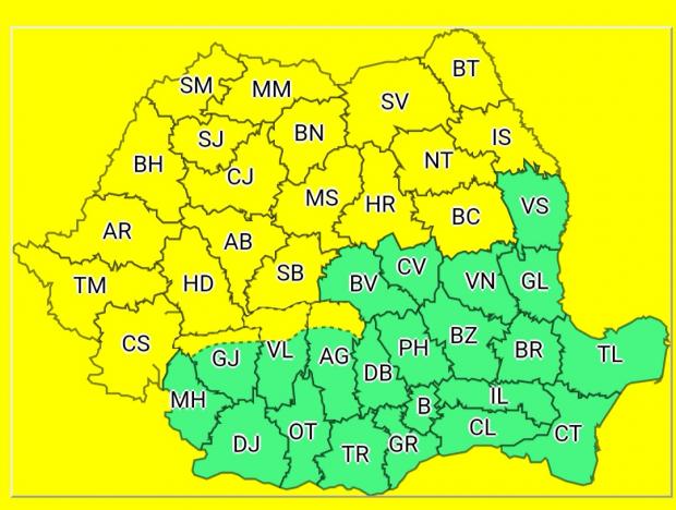 De asemenea, ANM a menținut avertizarea Cod galben în vigoare până sâmbătă ora 16.00. Potrivit acesteia, în Crișana și local în Banat, Maramureș și nordul Transilvaniei, precum și la altitudini sub 1500 m în zona Carpaților Occidentali, în vestul Carpaților Meridionali și în nordul Carpaților Orientali va ploua și se vor acumula cantități de apă de 25...40 l/mp, iar izolat vor depăși 50...60 l/mp.