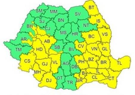 Va cădea grindină, iar în intervale scurte de timp sau prin acumulare cantitățile de apă vor fi de 20...25 l/mp și izolat de peste 30...40 l/mp.
