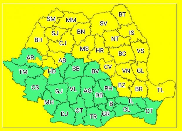 Notă: Manifestări de instabilitate atmosferică vor fi pe arii restrânse şi în restul regiunilor", se arată în atenţionarea meteo ANM.