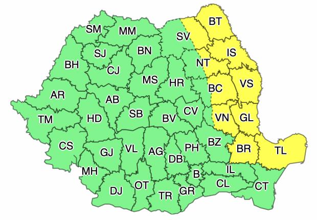 Avertizarea meteo Cod galben a intrat în vigoare astăzi, la ora 10:00, și este valabilă până la ora 20:00.