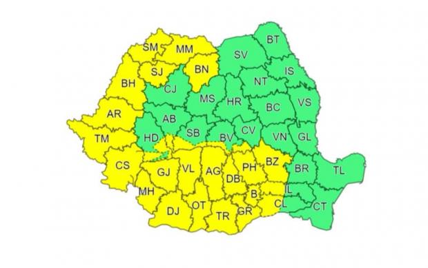 Potrivit meteorologilor, Codul galben de vreme rea va fi valabil vineri între orele 12.00 - 23.00 în Banat, Crișana, Maramureș, Oltenia, cea mai mare parte a Munteniei și nordul Transilvaniei.