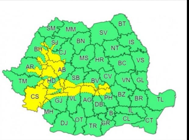 În Carpații Meridionali și Occidentali și local în Banat, vântul va avea intensificări cu viteze de 60...80 km/h. La altitudini de peste 1700 m, rafalele vor depăși 100 km/h, va fi viscol și vizibilitate scăzută.