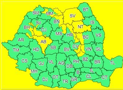 Avertizarea meteo intră în vigoare în această seară, la ora 20:00 și este valabilă până mâine, ora 18:00.