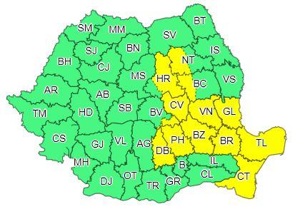 În intervalul menționat, în Carpații Orientali și de Curbură, în sudul Moldovei, nordul Munteniei și în Dobrogea, vor fi perioade cu instabilitate atmosferică accentuată.