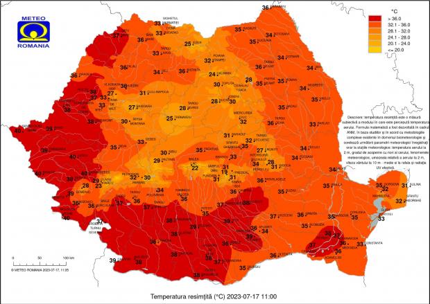 Cel mai rece este la Toplița, cel mai cald este la Constanța. Sunt 23 de grade Celsius la București și la Toplița, 24 de grade la Oradea, și Galați, 25 de grade la Drobeta Turnu Severin, 21 de grade la Sibiu și la Craiova și 20 de grade la Cluj Napoca.