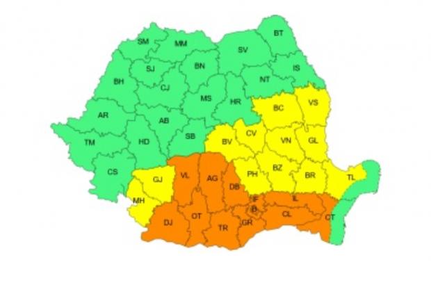 Administraţia Naţională de Meteorologie (ANM) a emis, vineri, o nouă avertizare Cod portocaliu de caniculă, valabilă până sâmbătă dimineaţa în 13 judeţe şi în Bucureşti, precum şi un Cod galben căldură persistentă, ce vizează alte 12 judeţe.