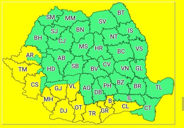 Temperaturile maxime se vor situa în general între 33 şi 36 de grade, iar minimele se vor încadra între 17 şi 22 de grade.