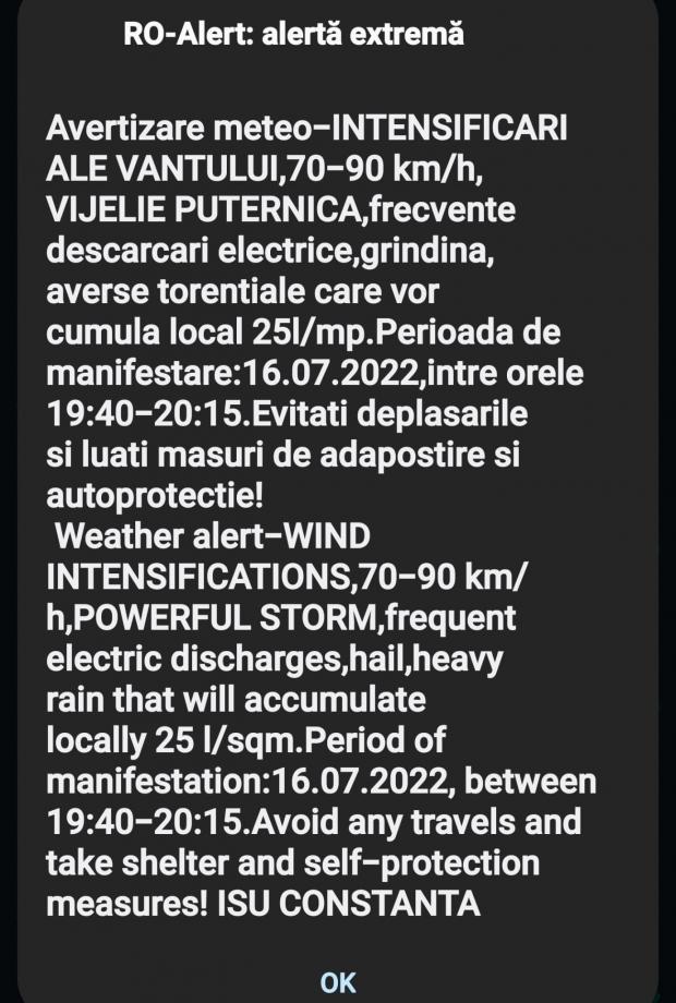Update: Mesaj RO-ALERT de la ISU Constanța.