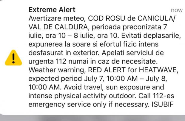 Capitala și alte 15 județe se vor afla sub Cod roșu de caniculă și disconfort termic accentuat pe parcursul zilei de luni, când temperaturile maxime vor urca până la 41 de grade, potrivit Administrației Naționale de Meteorologie. În județele vizate de codul roșu a fost emis și un mesaj RO-ALERT.
