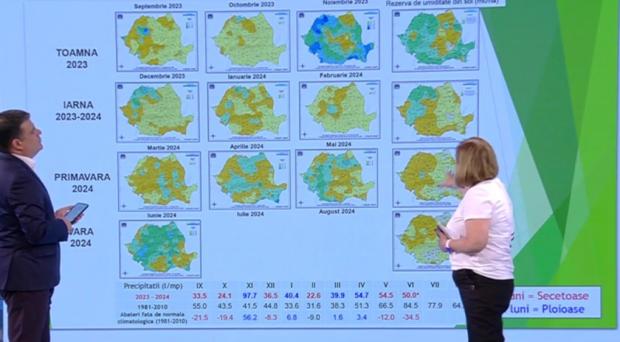 Va urma iulie și august, unde este evidentă, starea de secetă pedologică, în special pentru jumătatea estică a țării, cu extindere la acest moment și în partea de sud-vest și vest a țării.
