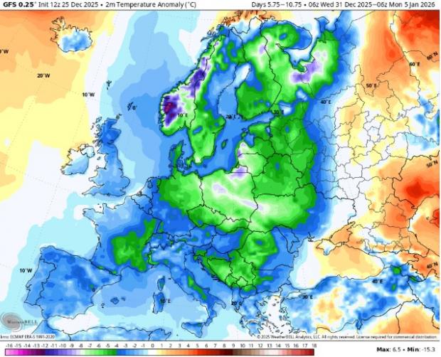 Estimările pentru luna ianuarie indică temperaturi sub valorile normale pe cea mai mare parte a continentului. Circulația aerului va favoriza aducerea maselor de aer rece dinspre nord și nord-est, ceea ce susține un tipar de iarnă autentică.