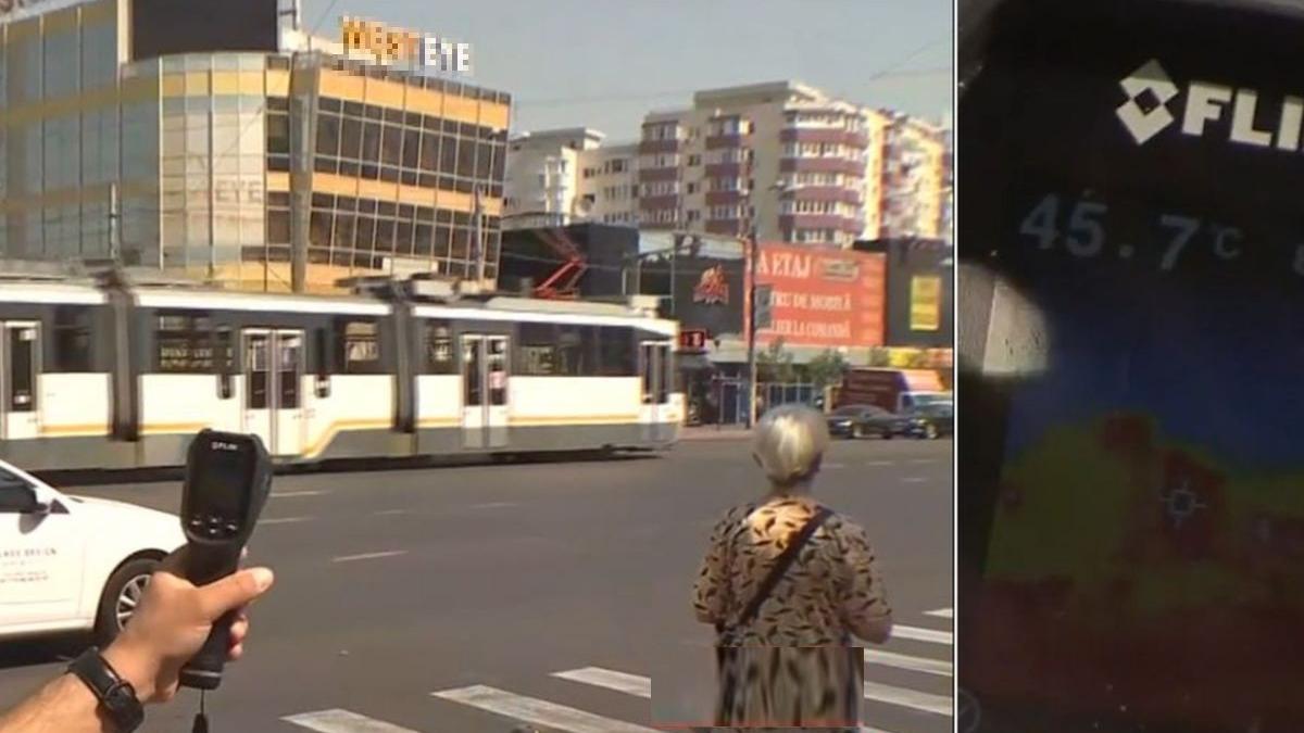 La ora 11, la Bucureşti erau 36 grade Celsius, iar cu o cameră de termoviziune, aflăm că temperatura resimiţită la nivelul solului este de 60 de grade.