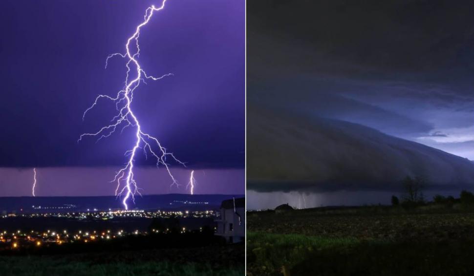 Norul de ploaie format și fulgerele din timpul unei furtuni au creat un spectacol de lumini și culoare cu totul deosebit.