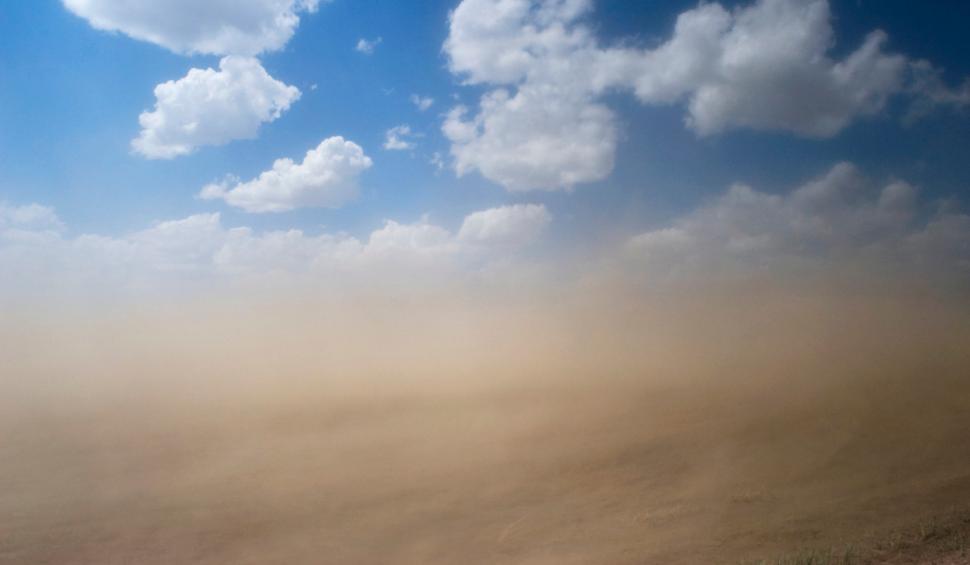 Asta este cauza norului de praf care s-a ridicat de pe câmpuri în Ungaria, câmpuri probabil proaspăt arate, un pământ foarte uscat, și intensificări ale vântului extrem de puternice.