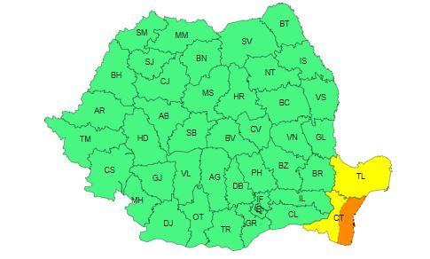 De asemenea, în intervalul 29 august, ora 23:00 - 30 august, ora 10:00, va fi în vigoare un Cod portocaliu de averse torenţiale, importante cantitativ, în zona de litoral a judeţului Constanţa, unde, prin acumulare, cantităţile de apă vor fi de 25 - 40 l/mp, izolat de peste 50 - 60 l/mp.