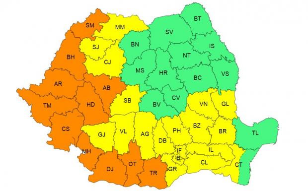 Zone afectate: județele Satu Mare, Bihor, Arad, Timiș, Caraș-Severin, Hunedoara, Alba, Mehedinți, Dolj, Olt, Teleorman