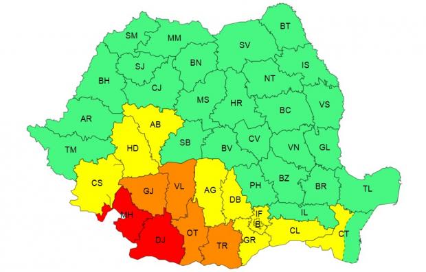 Valul de căldură va continua să se intensifice, iar în județele Mehedinți și Dolj se vor înregistra temperaturi maxime de 39...41 de grade. Disconfortul termic va fi deosebit de accentuat, iar indicele temperatură-umezeală (ITU) va depăși pragul critic de 80 de unități. Minimele termice vor fi de 20...23 de grade, astfel că vor caracteriza o noapte tropicală.