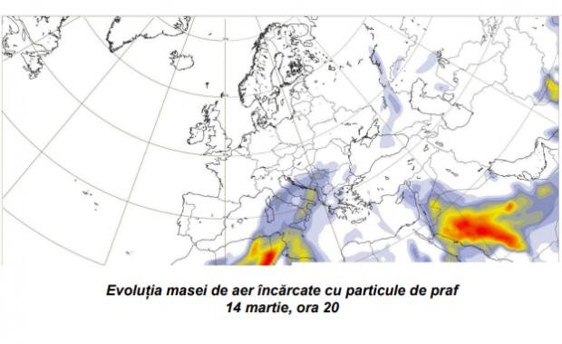 „În perioada 14 - 16 martie, circulația predominant sud-vestică a aerului va favoriza în continuare avansul dinspre nordul Africii a unei mase de aer