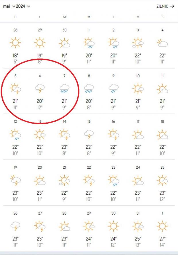 În fine, în săptămâna 27 mai-2 iunie 2024 ne putem aștepta la maxime de 25 de grade (minimele fiind de 12 grade), anunță Accuweather.