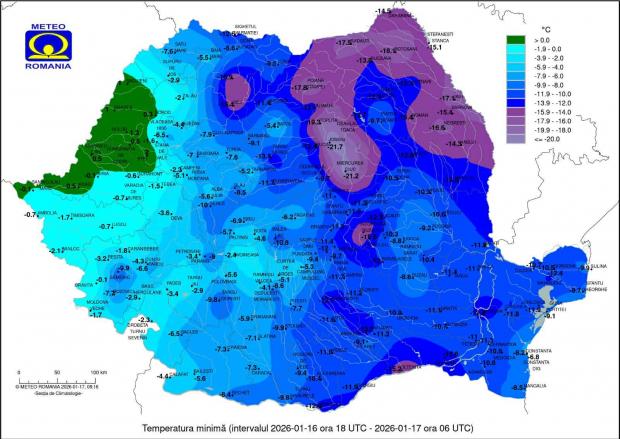 Temperaturi minime înregistrate în această dimineață, 17 ianuarie:
