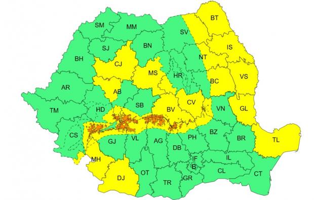 Administrația Națională de Meteorologie a emis, miercuri, cinci coduri portocalii și galbene de zăpadă, viscol și vânt puternic, în special în zonele de munte. De asemenea, meteorologii au transmis și o informare de vreme rea pentru o mare parte din țară.