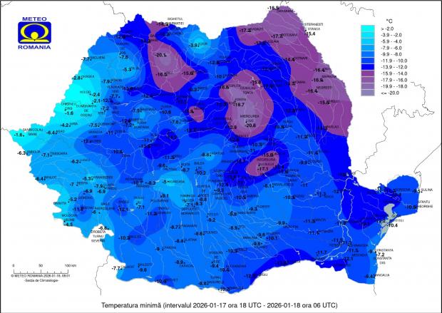 UPDATE 09:25 În această dimineață ANM a înregistrat 4 recorduri termice zilnice la stațiile Darabani, Stânca Ștefănești, Gura Portiței, Oltenița, unde a fost cea mai rece dimineață de 18 ianuarie din ultimii aproximativ 60 de ani.