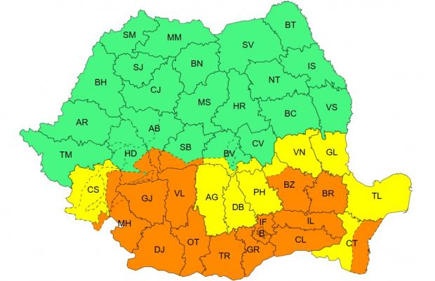Zone afectate: județele Mehedinți, Dolj, Olt, Vâlcea și Gorj