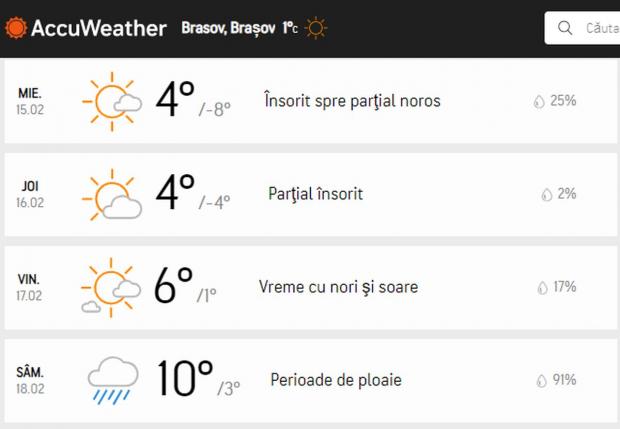 Prognoza Accuweather pentru Braşov