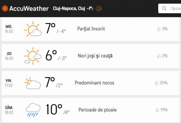 Prognoza Accuweather pentru Cluj