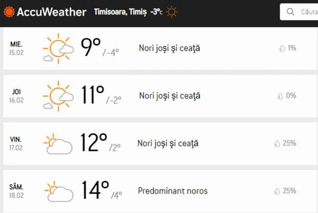 Prognoza Accuweather pentru Timişoara