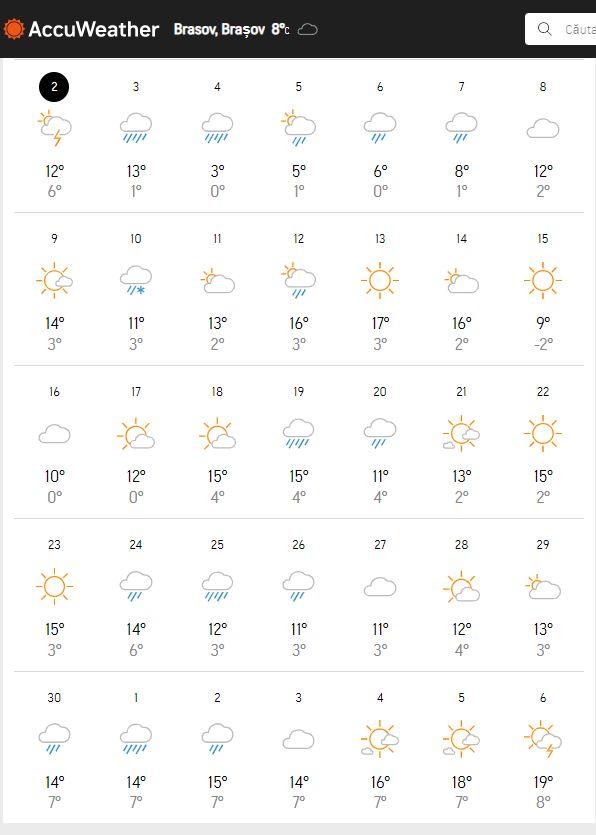 În Braşov, o lună de primăvară destul de rece, cu maxime ce nu depăşesc 16 grade, minime cu minus în termometre, dar şi zile în care se va vedea soarele.
