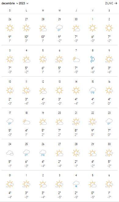 Iar meteorologii Accuweather au actualizat prognoza meteo pentru lunile următoare. Potrivit acestora, deși temperaturile vor scădea și vor apărea ploile, primii fulgi de zăpadă se vor lăsa așteptați. Concret, deși se anunță lapoviță și ninsoare în data de 15 și 26 decembrie, prima ninsoare mai serioasă va cădea în București abia în data de 4 ianuarie 2024.