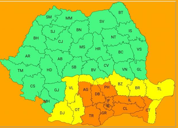 Administrația Națională de Meteorologie a emis o nouă avertizare cod portocaliu de caniculă pentru mai multe județe din România. Potrivit meteorologilor, valul de căldură va persista până sâmbătă.