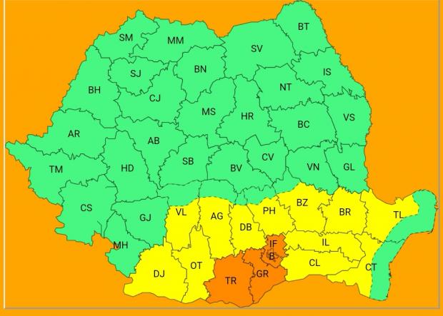 Avertizarea meteo va fi valabilă de astăzi, ora 10:00, până mâine, la aceeași oră.