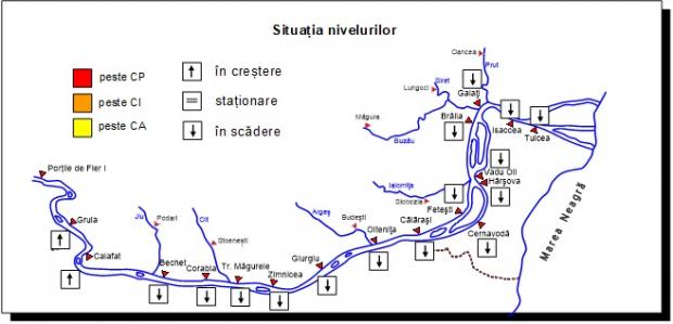În aval de Porţile de Fier debitele vor fi în prima parte a intervalului în creștere pe sectorul Gruia – Giurgiu și în scădere pe sectorul Zimnicea – Tulcea, iar în partea a doua a intervalului vor fi în scădere pe sectorul Gruia – Călărași și relativ staționare pe sectorul Cernavodă – Tulcea.