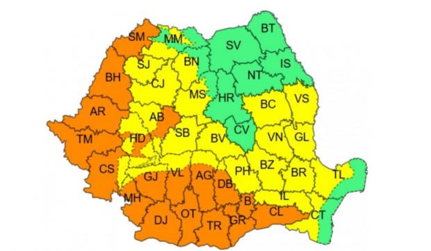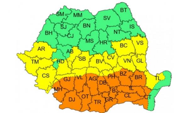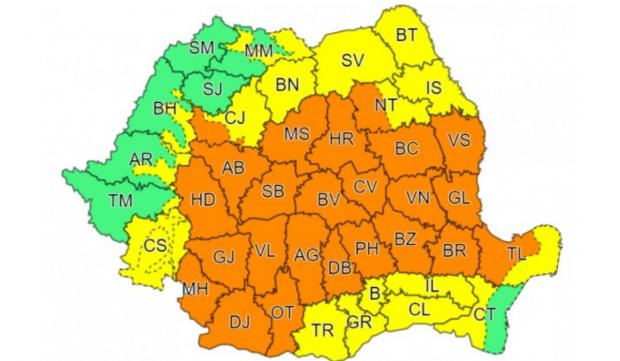 A doua avertizare meteo ANM, de tip cod portocaliu, se referă la temperaturi extreme în mai multe regiuni ale ţării.