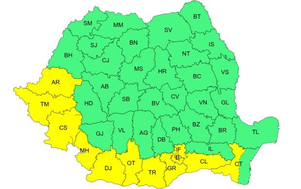 Joi (21 august) în Banat, sudul Crișanei și al Olteniei, sudul și centrul Munteniei precum și în sud-vestul Dobrogei va fi caniculă șidisconfort termic ridicat, iar indicele temperatură-umezeală (ITU) local va atinge pragul critic de 80 de unități.