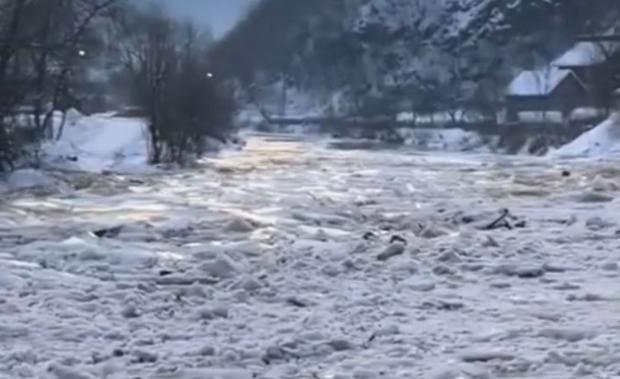 Aici, un zăpor (acumulare de sloiuri de gheață, n.r.) a cedat miercuri după-amiază, după ce temperaturile au crescut.