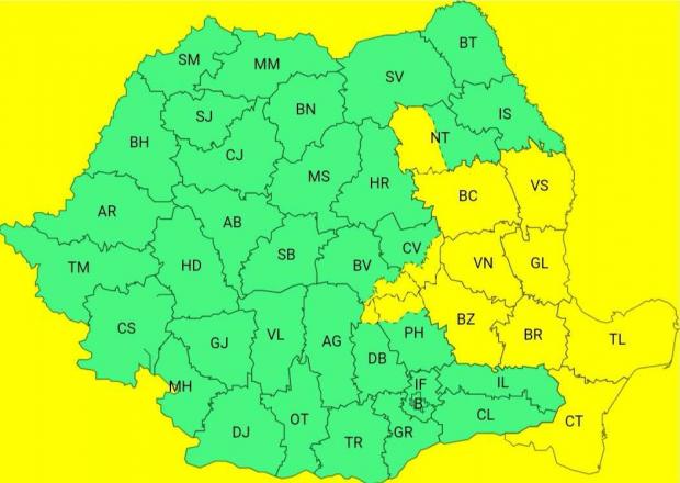 Noua avertizare este în vigoare duminică, de la ora 10 dimineața, până luni, la ora 8.