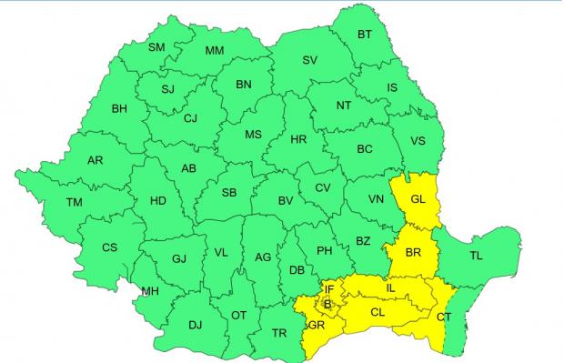 Codul galben va fi valabil și vineri, între 12:00 și 21:00, în șapte județe și în București.
