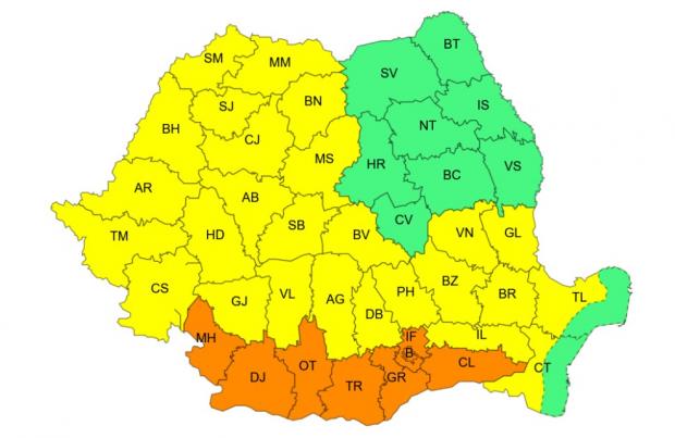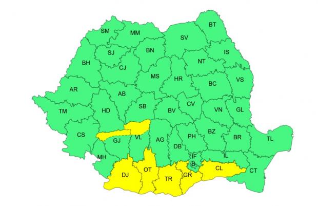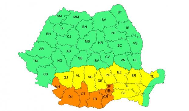 În sudul și vestul Olteniei, precum și în sudul și centrul Munteniei, valul de căldură va persista, va fi caniculă, disconfort termic accentuat, iar indicele temperatură-umezeală (ITU) va depăși pragul critic de 80 de unități. Temperaturile maxime se vor încadra între 37 și 39 de grade. Minimele termice vor fi de 20...22 de grade, astfel că vor caracteriza o noapte tropicală.
