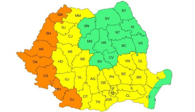 Zone afectate: județele Satu Mare, Bihor, Arad, Timiș, Caraș-Severin, Mehedinți și Dolj