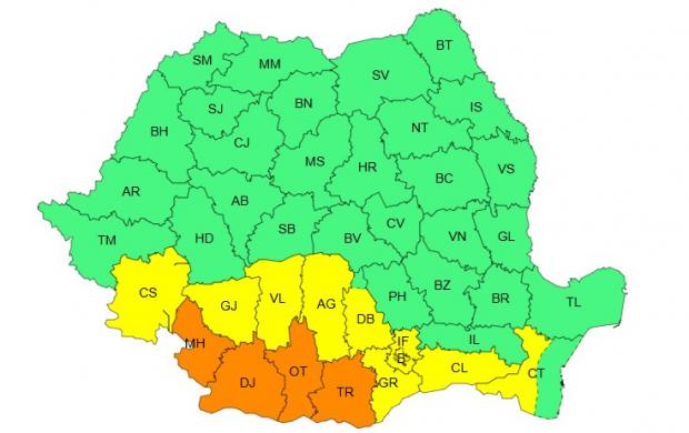 Zone afectate: județele Mehedinți, Dolj, Olt și Teleorman