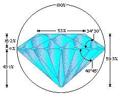 Proportiile si unghiurile ideale ale briliantului rotund (dupa Marcel Tolkowsky, 1919)