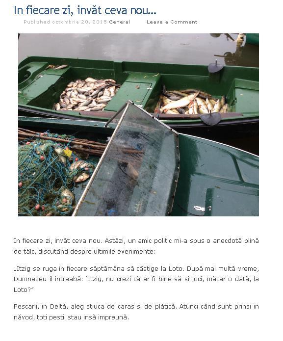 Pescarii, in Deltă, aleg stiuca de caras si de plătică. Atunci când sunt prinsi in năvod, toti pestii stau însă impreună", a sris Adrian Năstase.