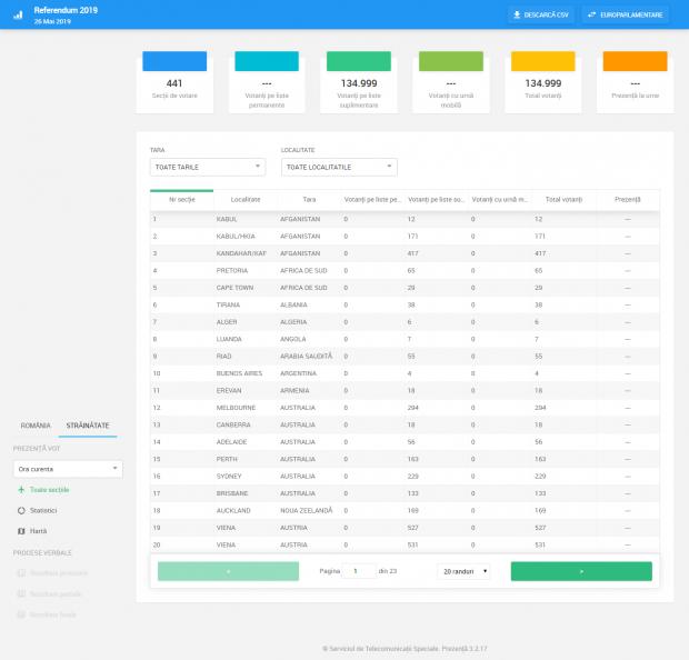 Alegeri Europarlamentare 2019 și Referendum 2019. Prezența la vot la alegerile europarlamentare în Diaspora era la ora 14.22 de 136.000 la alegerile europarlamentare, în timp ce la Referendum au votat 134.000.