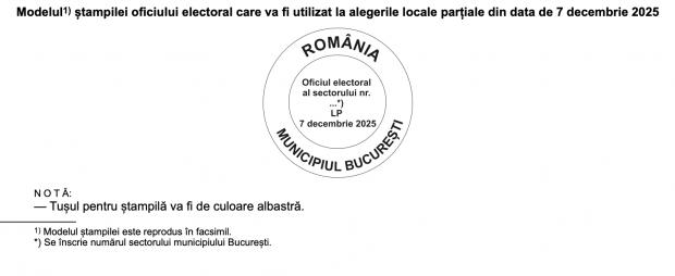 Modelul buletinului de vot care va fi utilizat în data de 7 decembrie 2025 pentru alegerea primarilor și a primarului general al municipiului București este cel prevăzut în anexa nr. 2 la Hotărârea Autorității Electorale Permanente nr. 8/2020 pentru aprobarea modelelor buletinelor de vot care sunt folosite la alegerile locale, potrivit instrucțiunilor AEP, care precizează și cum va arăta ștampila de vot.