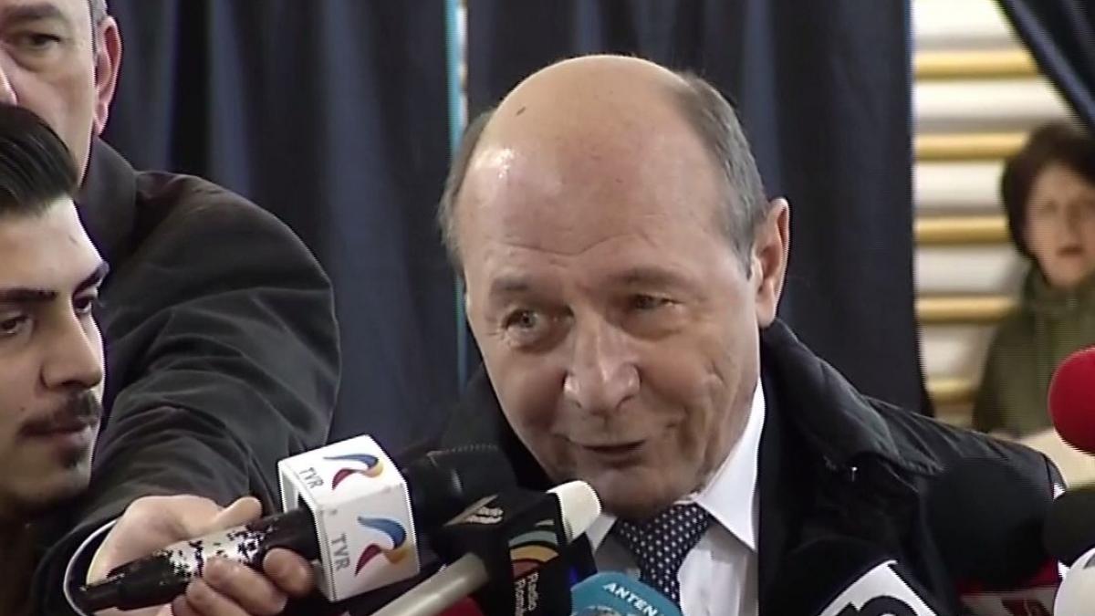 ALEGERI PREZIDENȚIALE 2019. Fostul președinte Traian Băsescu a sosit la secția de votare de la Liceul Jean Monnet din București, unde și-a exprimat opțiunea electorală.